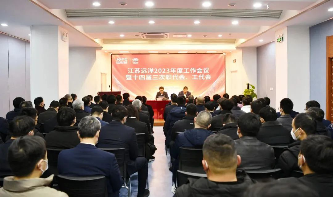 會上簽訂2023年度公司集體合同,討論并通過江蘇遠洋十四屆三次職代會、工代會決議。江蘇遠洋各部門負責人、各所屬企業(yè)負責人,助理級以上管理人員,職工代表,受表彰代表參加會議。
